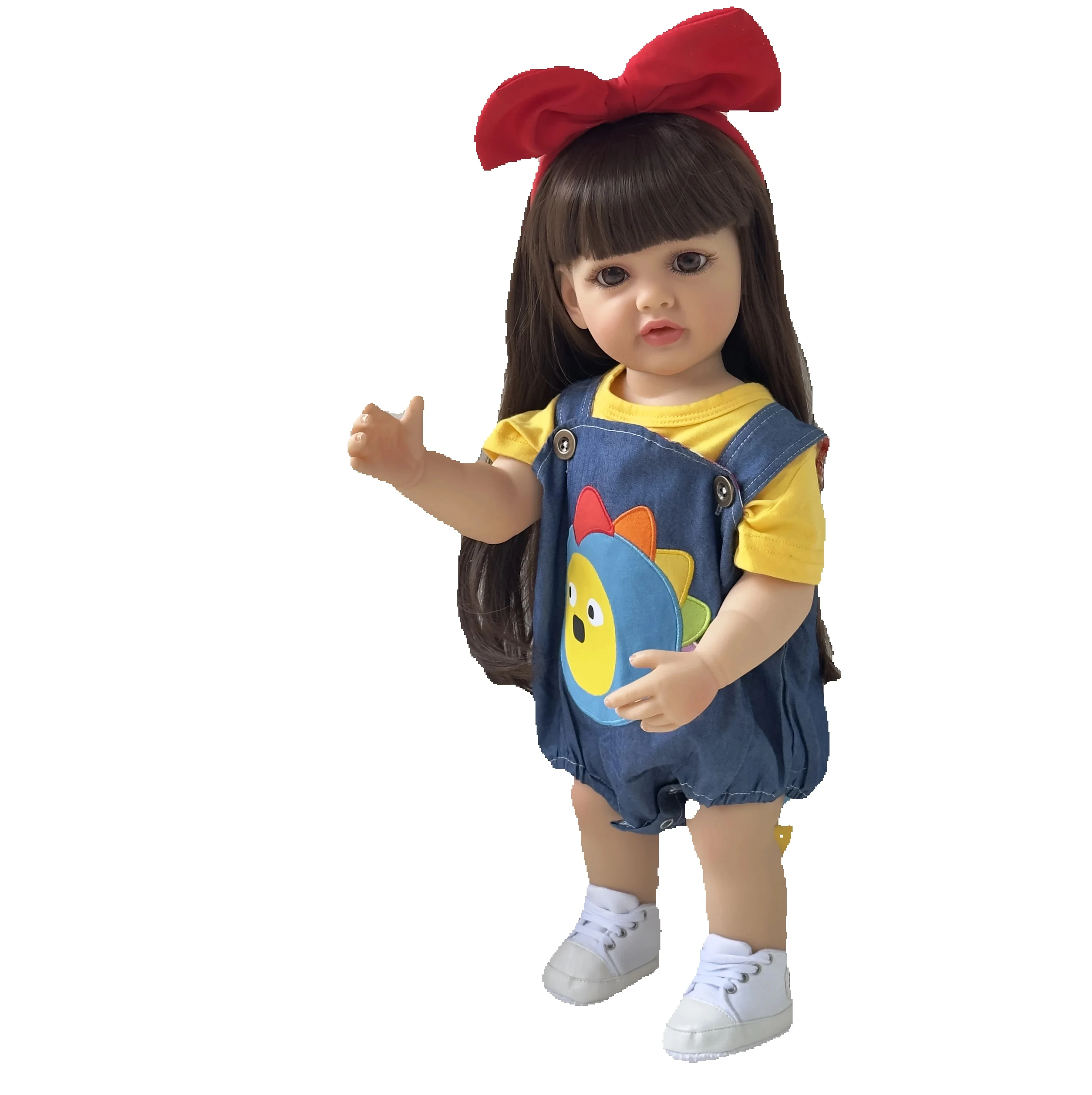 Estrutura: Todo o corpo é feito de Vinil 100% Silicone super macio; ela pode sentar-se ou deitar, não pode falar, não come, pode dar banho, movimenta braços e pernas, olhos não piscam;