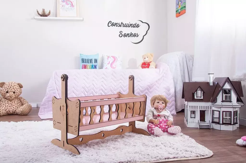 ESTE LINDO BERÇO FABRICADO EM MDF DE 9MM, COM DETALHES CORTADOS EM MDF 3MM, JÁ PINTADS E ENVERNIZADOS É IDEAL PARA SUAS TARDES DE DIVERSÕES. PODE SER UTILIZADO COM BONECAS DE ATÉ 60 CM DE COMPRIMENTO E 24 CM DE LARGURA. BEM RESISTENTE, O BERÇO É FABRICADO COM MDF DE PINUS DE 9MM, GARANTINDO UMA DURABILIDADE SUPERIOR AO PRODUTO.