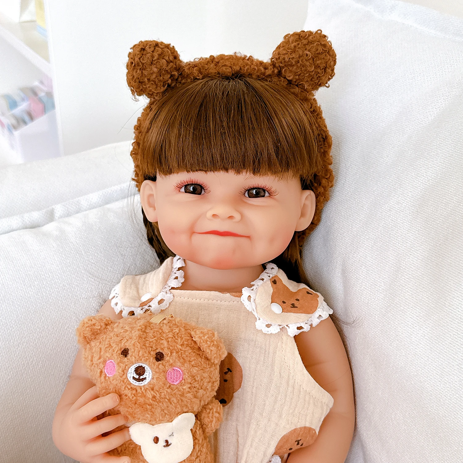 Estrutura: Cabeça e membros são todos feitos de vinil de silicone. Pode colocá-lo na água. Produção de matéria-prima importada de vinil macio, não tóxico; membros de bonecas podem ser ativos, podem sentir ou deitar, não podem ficar de pé, falar ou se alimentar.